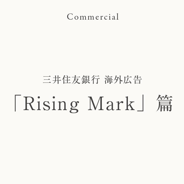Project - Commercial Project - Commercial 三井住友銀行 海外広告 「Rising Mark」篇 制作年:2016年 クライアント:三井住友銀行 Links →三井住友銀行WEBサイト 作曲/編曲/演奏を担当しました。 Links